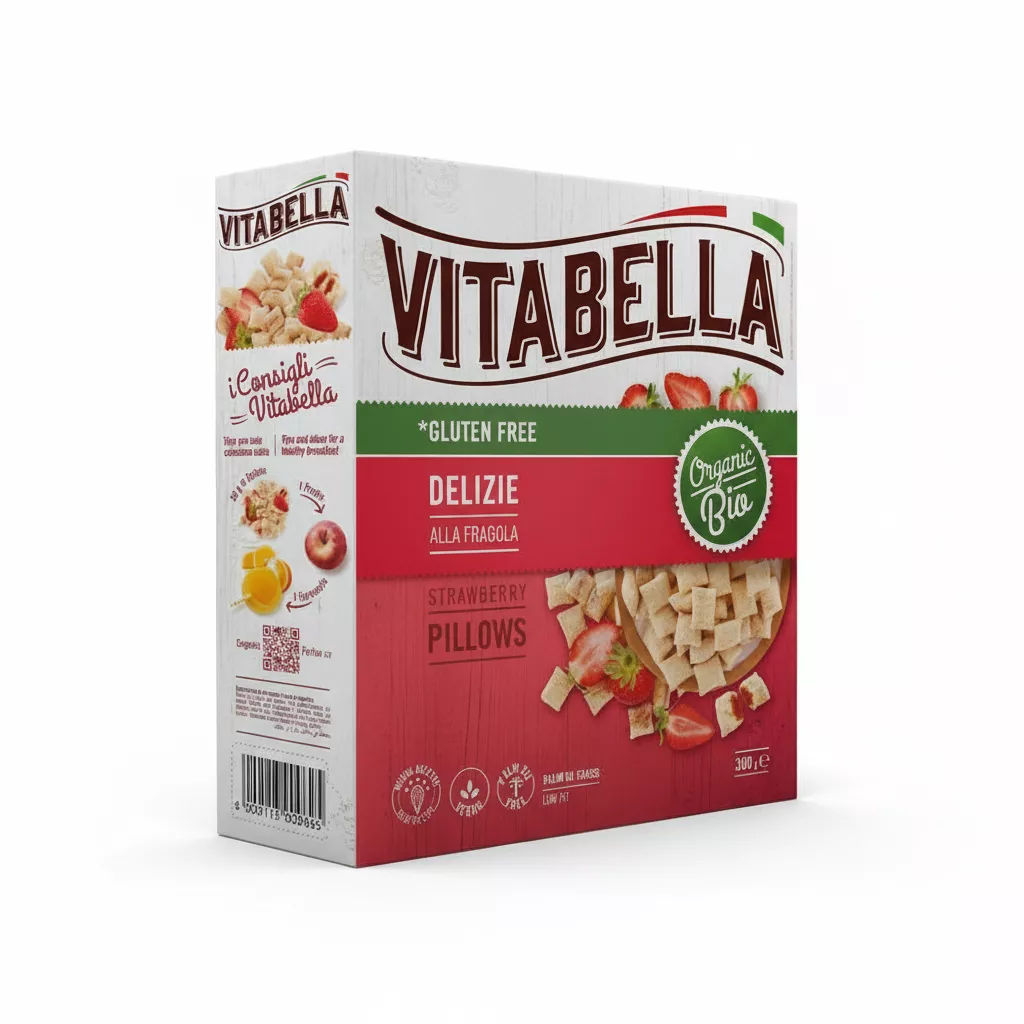 Μια έκρηξη φρουτένιας γεύσης σε κάθε μπουκιά! Τα Vitabella Strawberry Pillows είναι τραγανά μαξιλαράκια από ρύζι, καλαμπόκι και βρώμη, γεμιστά με απαλή κρέμα από αληθινό πουρέ φράουλας. Μια απολαυστική επιλογή χωρίς γλουτένη, ιδανική για όσους αναζητούν ένα ελαφρύ, φρουτένιο και απόλυτα υγιεινό σνακ.